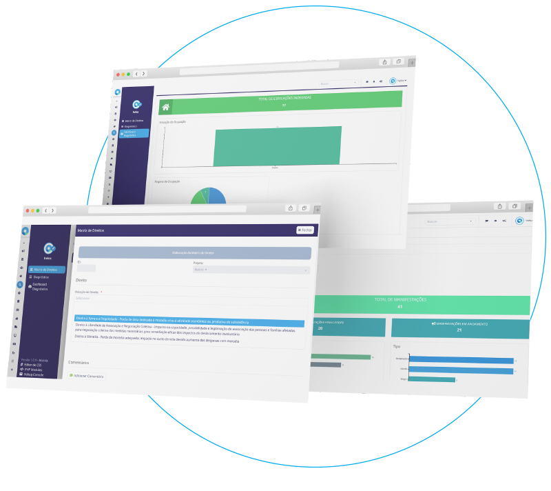 Uma única plataforma que permite o acesso a todos os envolvidos no processo. Desde área social, jurídico, engenharia, financeiro e muito mais. A gestão de acesso permite todas as áreas terem acesso restrito as suas tarefas específicas.